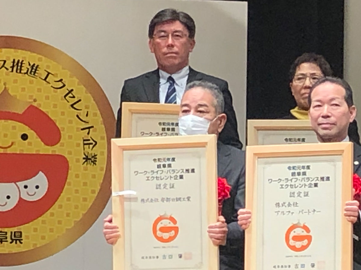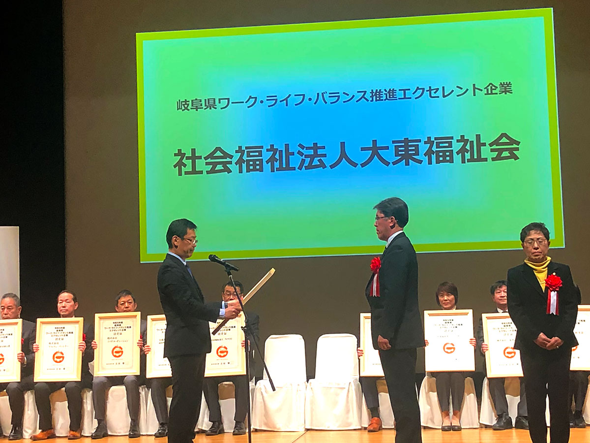 大東福祉会は「岐阜県ワーク・ライフ・バランス推進エクセレント企業」として岐阜県から認定されました